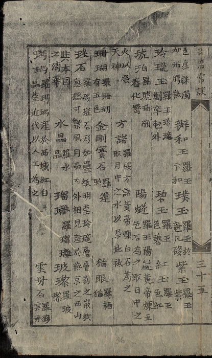 | Hán-Việt reading : Dương toại Hán text : 陽燧 Nôm text : 羅玉陽燧(黄帝煉五色石為之取日中之火以祭天神) Quốc Ngữ : là ngọc Dương toại (Hoàng đế luyện ngũ sắc thạch vi chi, thủ nhật trung chi hoả dĩ tế thiên thần = Hoàng đế luyện đá ngũ sắc tạo ra, chọn lửa ở mặt trời để tế thiên thần) English : gem called Dương toại (created from five colour-gem by the emperor, to offer fire of the sun to a deity) Column : 3 | ![]() |