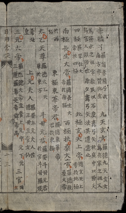 | Hán-Việt reading : Tam Quan Hán text : 三官 Nôm text : 同上 Quốc Ngữ : đồng thượng (giống trên: là ba đức Đại Đế chủ quản Thượng nguyên, Trung nguyên, Hạ nguyên; Tam vận là vua Nghiêu, vua Thuấn, vua Vũ) English : three great emperors, be responsible for Thượng nguyên, Trung nguyên with in turn names are Nghiêu emperor, Thuấn emperor and Vũ emperor Column : 8 | ![]() |