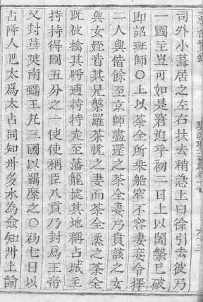 司 外 小 葺 居 之 . [63b*1*1] ti ngoại tiểu tập cư chi. 左 右 扶 去 稍 急 . [63b*1*7] Tả hữu phù khứ sảo cấp. 上 曰 徐 引 去 彼 乃 一 國 主 𡸈 何 如 是 窟 迫 乎 . [63b*1*13] Thượng viết: "Từ dẫn khứ, bỉ nãi nhất quốc chủ, khởi hà như thị quật bách hồ?'. 初 二 日 上 以 茶 全 已 破 卽 語 班 師 . [63b*2*11] Sơ nhị nhật, thượng dĩ Chà Bàn dĩ phá, tức ngữ ban sư. 上 以 茶 全 所 乘 船 窄 不 容 妻 妾 令 擇 二 人 與 偕 . [63b*3*5] Thượng dĩ Trà Toàn sở thừa thuyền trách, bất dung thê thiếp, lệnh trạch nhị nhân dữ giai. 餘 至 京 師 盡 還 之 . [63b*4*5] Dư chí kinh sư tận hoàn chi. 茶 全 妻 乃 賁 該 之 女 與 女 姪 皆 其 兄 槃 羅 茶 悅 之 妻 而 茶 全 烝 之 . [63b*4*12] Trà Toàn thê nãi Bí Cai chi nữ dữ nữ điệt giai kì huynh Bàn La Trà Duyệt chi thê, nhi Trà Toàn chưng chi. 茶 全 既 被 擒 其 將 逋 持 持 走 至 藩 籠 㨿 其 地 稱 占 城 主 持 持 得 國 五 分 之 一 使 使 称 臣 入 貢 乃 封 為 王 帝 又 封 華 英 南 蟠 王 凡 三 國 以 霸 縻 之 . [63b*5*18] Trà Toàn ký bị cầm, kì tướng Bô Trì Trì tẩu chí Phiên Lung, cứ kì địa, xưng Chiêm Thành chủ, Trì Trì đắc quốc ngũ phân chi nhất, sứ sứ xưng thần nhập cống, nãi phong vi vương đế hựu phong Hoa Anh, Nam Bàn vương phàm tam quốc dĩ bá mi chi. 初 七 日 以 占 降 人 巴 太 為 太 占 同 知 州 多 水 為 僉 知 州 . [63b*8*15] Sơ thất nhật, dĩ Chiêm hàng nhân Ba Thái vi Thái Chiêm đồng tri châu, Đa Thuỷ vi Thiêm tri châu. 上 諭 . [63b*9*18] Thượng dụ..
