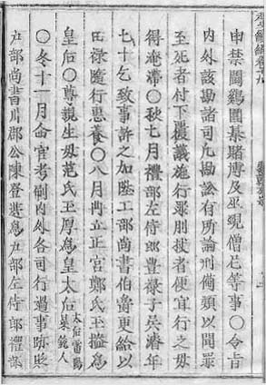 申 禁 鬪 鷄 圍 棊 賭 博 及 巫 覡 僧 妮 等 事 〇 . [12b*1*1] thân cấm đấu kê, vi kì, đổ bác, cập vu hích, tăng ni đẳng sự . 令 旨 内 外 該 勘 諸 司 凣 勘 訟 有 所 論 刑 僃 類 以 聞 罪 至 死 者 付 下 襨 議 施 行 罪 則 杖 者 便 宜 行 之 毋 得 淹 滯 〇 . [12b*1*17] Lệnh chỉ nội ngoại cai khám chư ti phàm khám tụng hữu sở luận hình bị loại dĩ văn, tội chí tử giả phó hạ phức nghị thi hành, tội tắc trượng giả tiện nghi hành chi, vô đắc yêm đái . 秋 七 月 禮 部 左 侍 郎 豊 禄 子 吳 濬 年 七 十 乞 致 事 . [12b*4*5] Thu thất nguyệt, Lễ bộ Tả thị lang Phong lộc tử Ngô Tuấn niên thất thập khất trí sự. 許 之 . [12b*5*6] Hứa chi. 加 陞 工 部 尙 書 伯 爵 更 給 以 田 禄 隨 行 惠 養 〇 . [12b*5*8] Gia thăng Công bộ Thượng thư bá tước, cánh cấp dĩ điền lộc tuỳ hành huệ dưỡng . 八 月 𱏺 立 正 宫 鄭 氏 玉 𣖮 爲 皇 后 〇 . [12b*6*8] Bát nguyệt, sách lập Chính cung Trịnh thị Ngọc Áng vi Hoàng hậu . 尊 親 生 母 范 氏 玉 厚 爲 皇 太 后 太 后 雷 陽 㫧 銳 人 〇 . [12b*7*4] Tôn thân sinh mẫu Phạm thị Ngọc Hậu vi Hoàng Thái hậu [Thái hậu Lôi Dương Bạo Nhuệ nhân,] . 冬 十 一 月 命 官 考 制 内 外 各 司 行 過 事 跡 . [12b*8*2] Đông thập nhất nguyệt, mệnh quan khảo chế nội ngoại các ti hành quá sự tích. 貶 户 部 尙 書 川 郡 公 陳 登 選 爲 户 部 左 侍 郎 禮 部 . [12b*8*18] Biếm Hộ bộ Thượng thư Xuyên quận công Trần Đăng Tuyển vi Hộ bộ Tả thị lang, Lễ bộ..